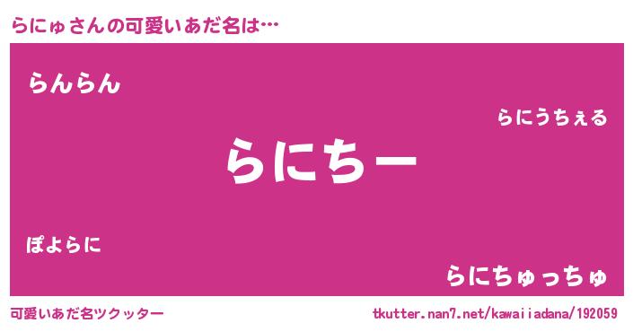 | 意味不明あだ名 | 『らにゅフォーエバー』『ペロリンらにゅ』 |