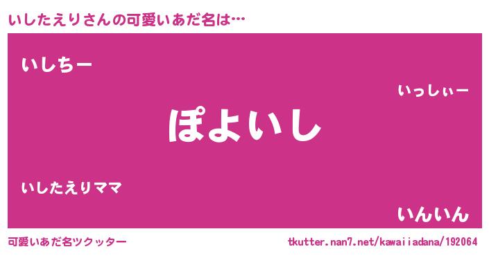 | 恥ずかしいあだ名 | 『いしっちょ』『プリティーいしたえり』 |