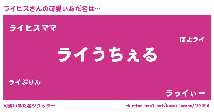 | ヘコむあだ名 | 『ライヒス(笑)』『ライ太郎』 |