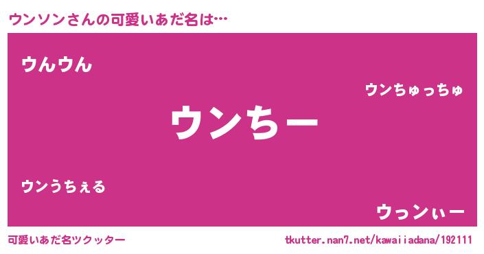 | 女子向けラノベタイトル風あだ名 | 『ウンソンの雑貨屋さん』『闇のウンソン』 |