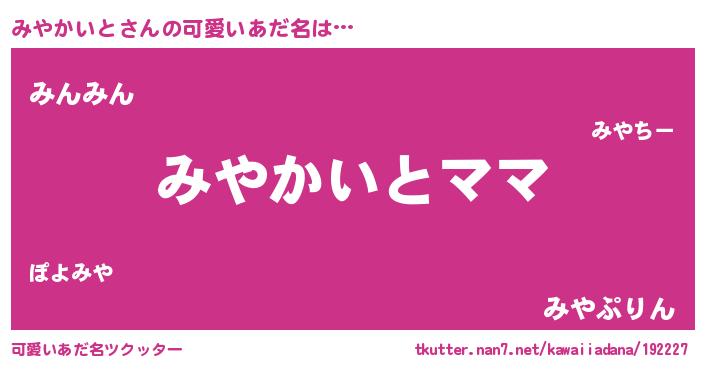 | ヘコむあだ名 | 『みやかいと(笑)』『みやにー』 |