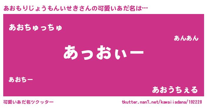 | ヘコむあだ名 | 『あおを』『あおにゅー』『酢こんぶ』 |