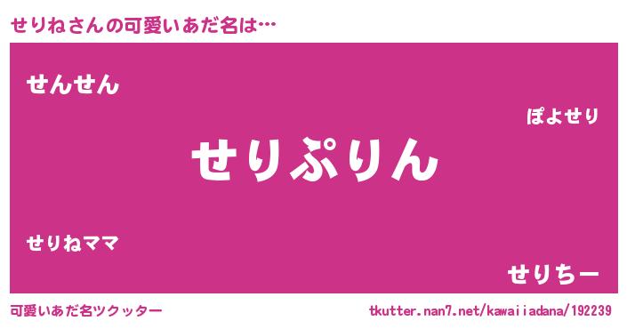 | ヘコむあだ名 | 『せりふぇ~』『牛乳』『せりね(笑)』 |