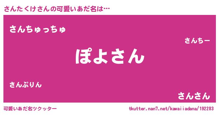 | 意味不明あだ名 | 『住所不定無職さんたくけ(91歳)』 |