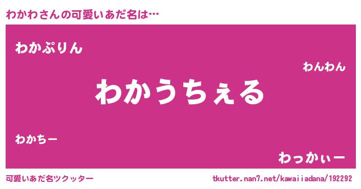 | 意味不明あだ名 | 『自称わかわ』『めかぶ科わかわ属』 |