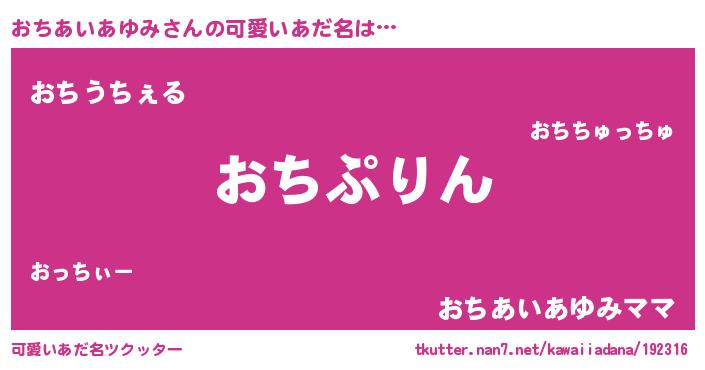 | ヘコむあだ名 | 『おちあいあゆみ(爆)』『おちお』 |