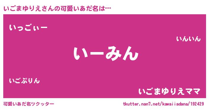 | 意味不明あだ名 | 『とにかく怪しいいごまゆりえ』 |