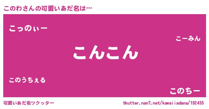 | 2回繰り返すあだ名 | 『このこの』『にたにた』『ここのの』 |