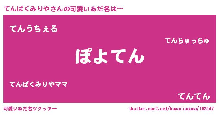 | ヘコむあだ名 | 『てんっふぃ~』『てんぱくみりや(震え声)』 |