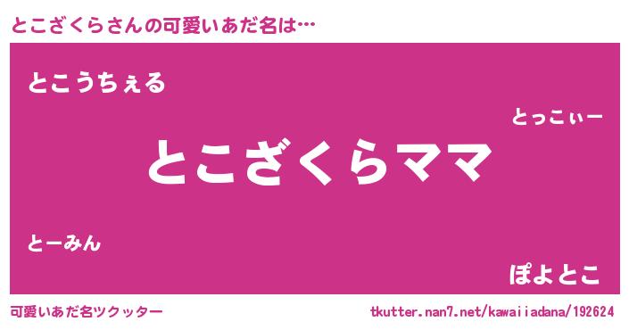| 意味不明あだ名 | 『永久保存とこざくら』『自称とこざくら』 |