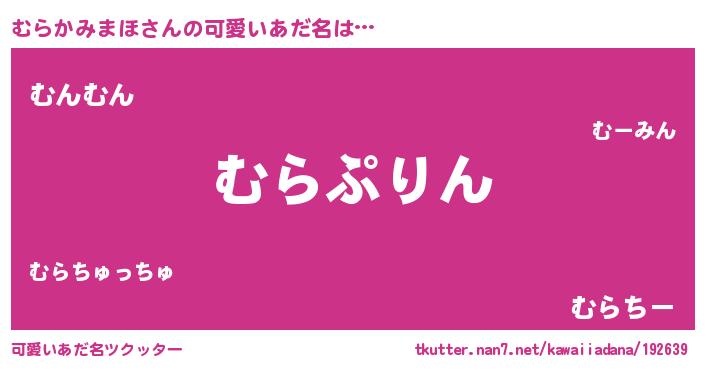 | 男性向けラノベタイトル風あだ名 | 『転生したらむらかみまほだった件』 |