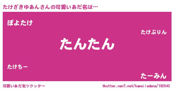 | 恥ずかしいあだ名 | 『プリティーたけざきゆあん』『たけちん』 |