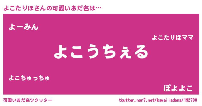 | ヘコむあだ名 | 『よこたりほ(苦笑)』『よこもー』 |
