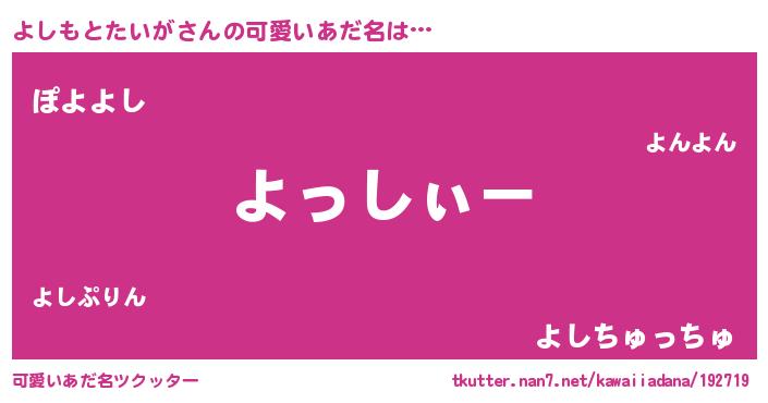 | 意味不明あだ名 | 『とにかく怪しいよしもとたいが』 |