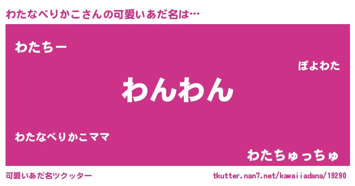 | 2回繰り返すあだ名 | 『わたわた』『わわたた』『ぽんぽん』 |
