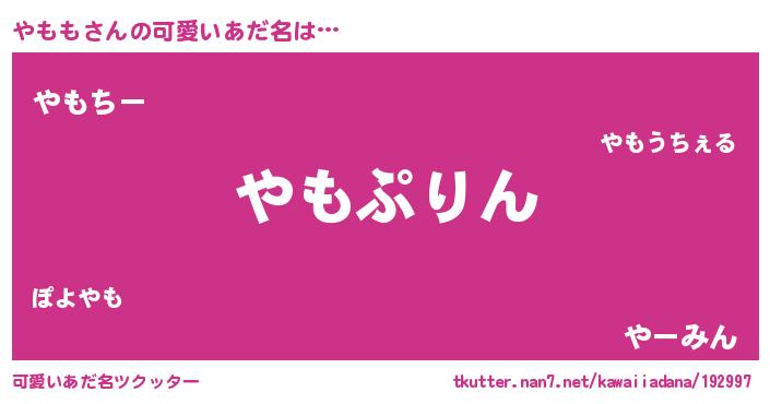 | 女子向けラノベタイトル風あだ名 | 『やももの玉の輿計画!』『闇のやもも』 |