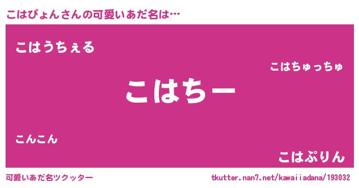 | ファンタジー風あだ名 | 『エターナルコハピョンー』『ゼコハトゥ』 |