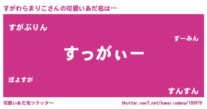 | 男性向けラノベタイトル風あだ名 | 『すがわらまりこの嫁は女の子じゃないと思った?』 |