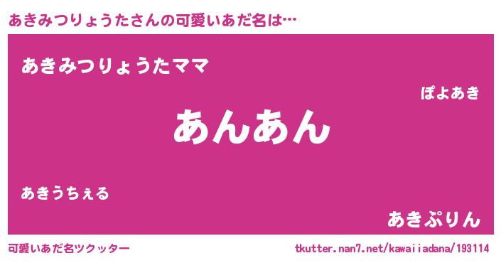 | ヘコむあだ名 | 『あきもー』『あきみつりょうた(小並感)』 |