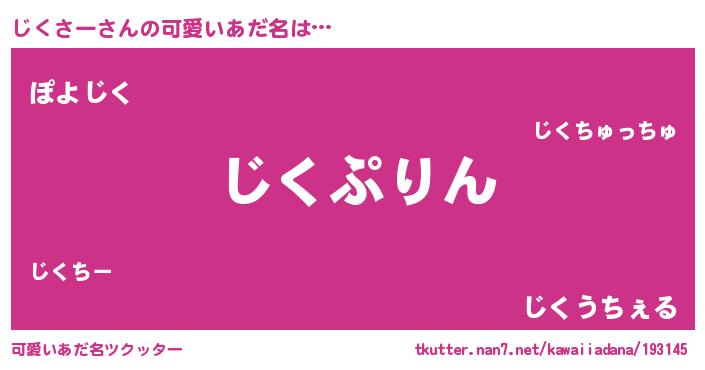 | 男性向けラノベタイトル風あだ名 | 『じくさー~年齢イコール彼女いない歴の魔法使い~』 |
