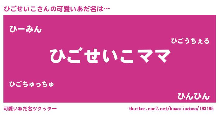 | ヘコむあだ名 | 『ひごせいこ(笑)』『ひごもー』 |