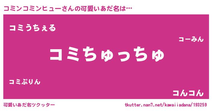 | 女子向けラノベタイトル風あだ名 | 『コミンコミンヒュー恋絵巻』 |