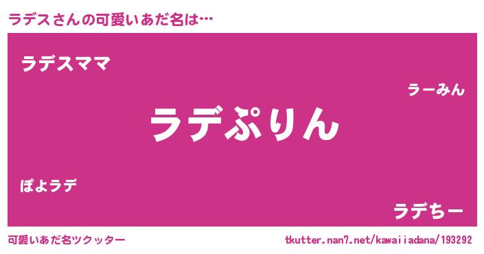 | ヘコむあだ名 | 『ラデス(笑)』『豆乳』『ラデ太郎』 |