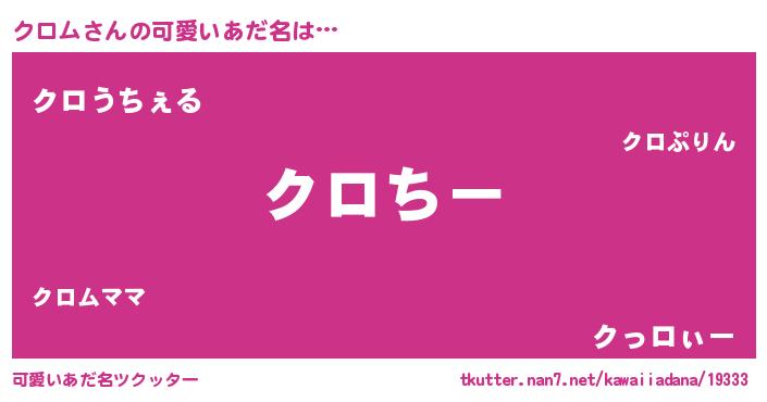 | 女子向けラノベタイトル風あだ名 | 『クロムの雑貨屋さん』『闇のクロム』 |