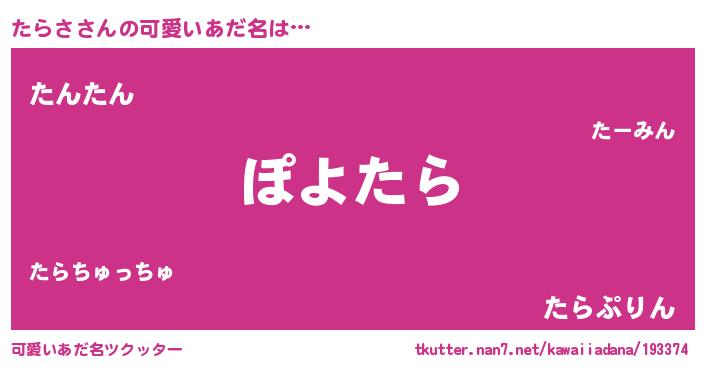 | 意味不明あだ名 | 『住所不定無職たらさ(4歳)』 |