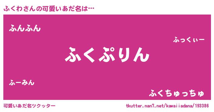 | 男性向けラノベタイトル風あだ名 | 『フクワスレイヤー』『ふくわの憂鬱』 |