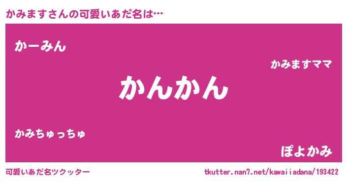 | 男性向けラノベタイトル風あだ名 | 『かみますの憂鬱』『魔弾の王とかみます』 |