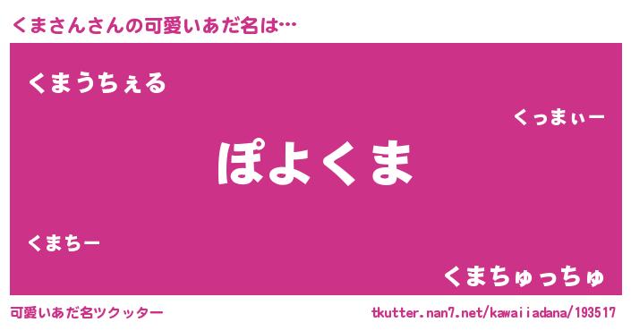 | ヘコむあだ名 | 『くまっぺ』『酢こんぶ』『くまにー』 |
