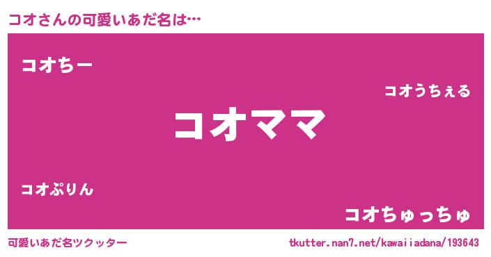 | ヘコむあだ名 | 『コオ(笑)』『牛乳』『コオにー』 |