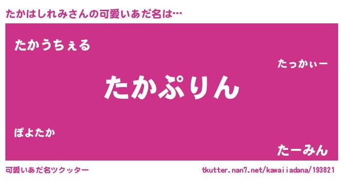| 男性向けラノベタイトル風あだ名 | 『たかはしれみ~年齢イコール彼女いない歴の魔法使い~』 |
