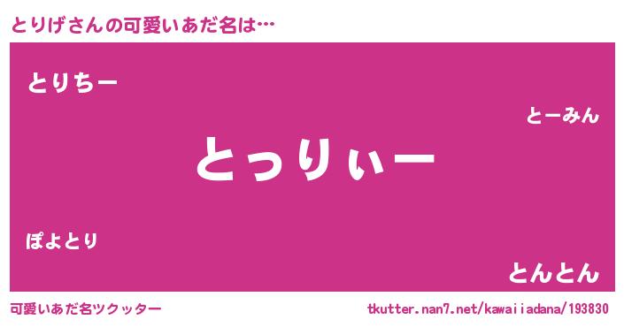 意味不明あだ名 | 『とにかく怪しいとりげ』 |