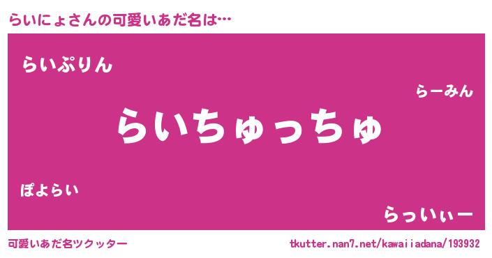 | ヘコむあだ名 | 『らいお』『らいにょ(小並感)』 |