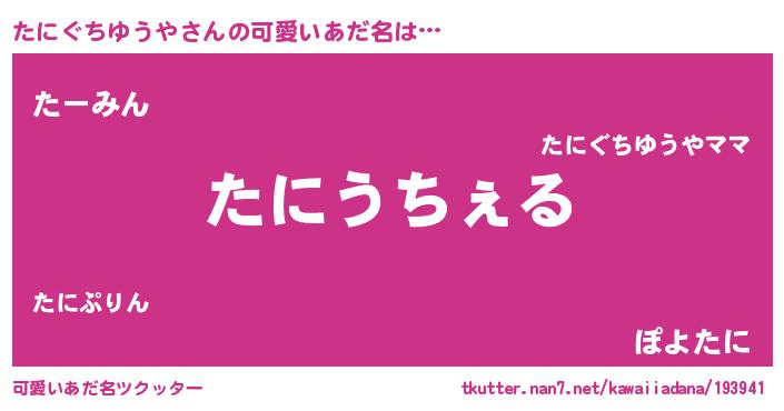| ヘコむあだ名 | 『たにぐちゆうや(笑)』『たにっ子』 |