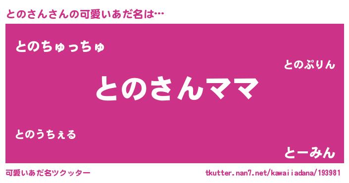 | ヒーロー風カッコイイあだ名 | 『ネオトノサン』『慈愛の使者とのさん』 |