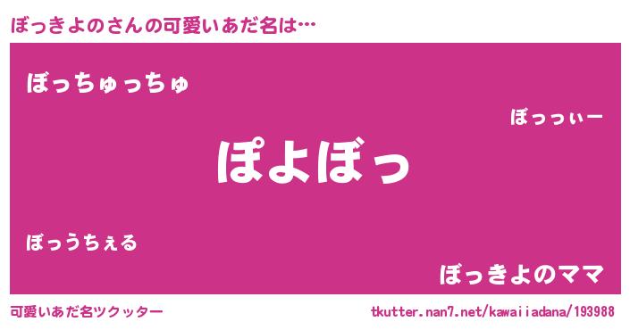 | ヘコむあだ名 | 『ぼっきよの(笑)』『ぼっぷりん』 |