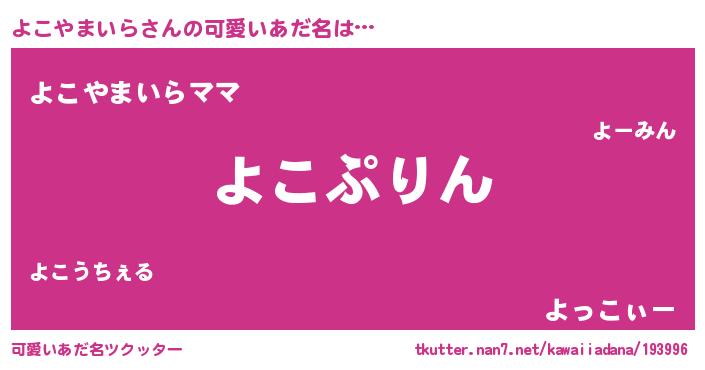 | ファンタジー風あだ名 | 『ユリヨコヴァット』『ヨコディッシュ』 |