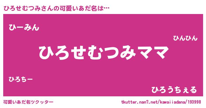 | ヘコむあだ名 | 『ひろせむつみ(震え声)』『ひろふぇ~』 |