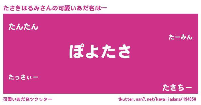 | 恥ずかしいあだ名 | 『プリティーたさきはるみ』『たさっちょ』 |