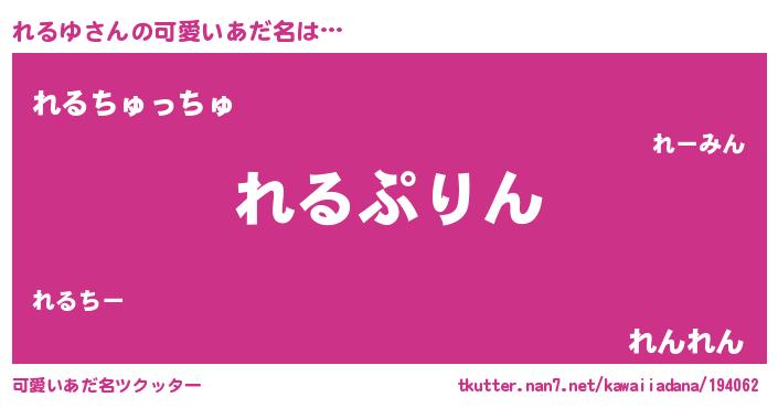 | 男性向けラノベタイトル風あだ名 | 『れるゆ~年齢イコール彼女いない歴の魔法使い~』 |