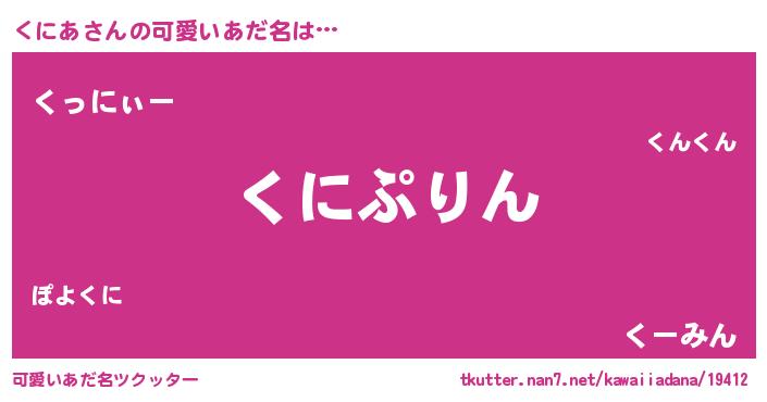 | 男性向けラノベタイトル風あだ名 | 『くにあ~年齢イコール彼女いない歴の魔法使い~』 |