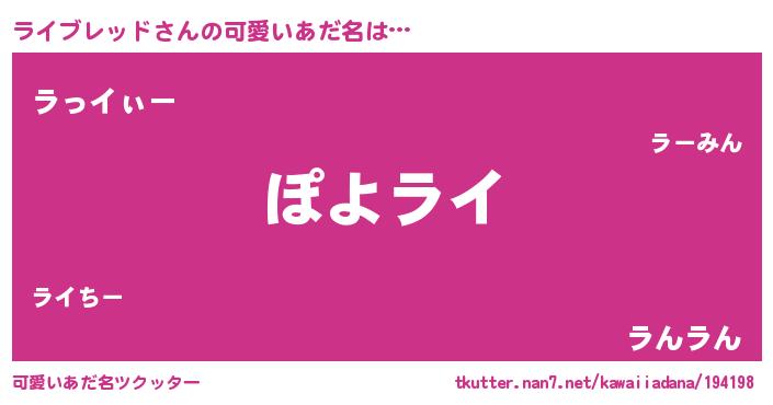 | 男性向けラノベタイトル風あだ名 | 『この素晴らしい世界にライブレッドを!』 |