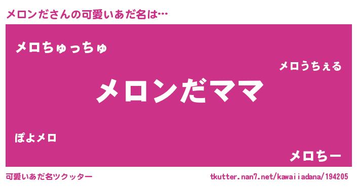 | 女子向けラノベタイトル風あだ名 | 『異世界で失敗しない100のメロンだ』 |