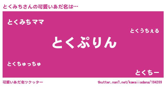 | 男性向けラノベタイトル風あだ名 | 『トクミチスレイヤー』 |