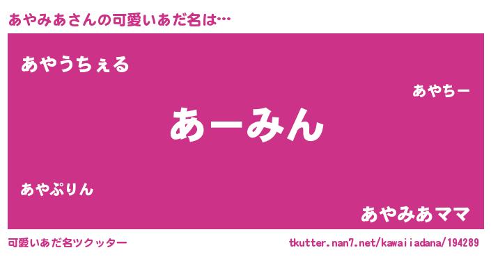 | 欧米人風あだ名 | 『あやみあ・ステッグマイヤー』 |