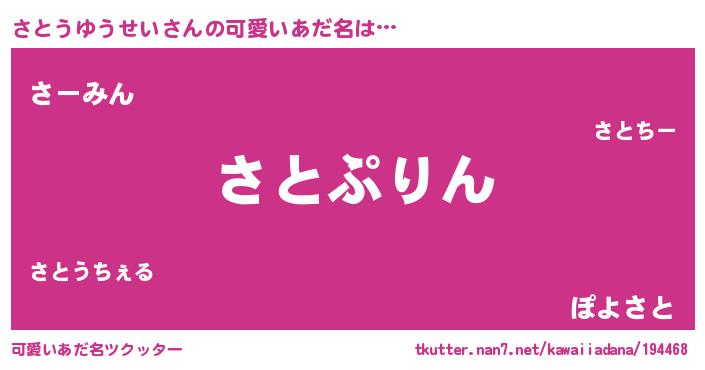 | 料理風あだ名 | 『さとうゆうせいごはん』 |