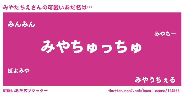 | ヒーロー風カッコイイあだ名 | 『愛の使者みやたちえ』『仮面ミヤダー』 |